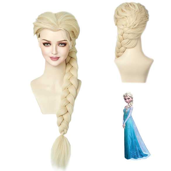 Luxe Frozen Elsa Ice-Queen pruik lang haar met ingevlochten lange dikke staart. Lengte van de staart is 60-65 cm vanaf de nek gemeten.