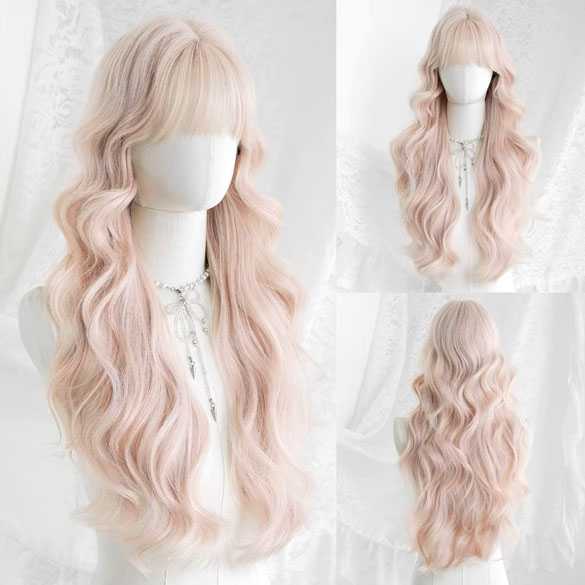 Pruik ang haar in laagjes met grove slagen pastel roze blond