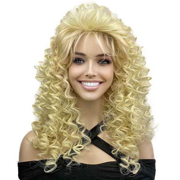 Jaren 80 country western kapsel pruik krullend blond Dolly Parton
