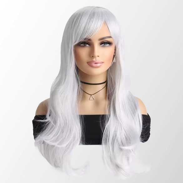 Carnavalspruik zilvergrijs lang haar in laagjes