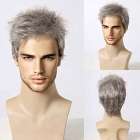 Mannenpruik kort model in laagjes met highlights. Grijsbruine basiskleur met highlights.