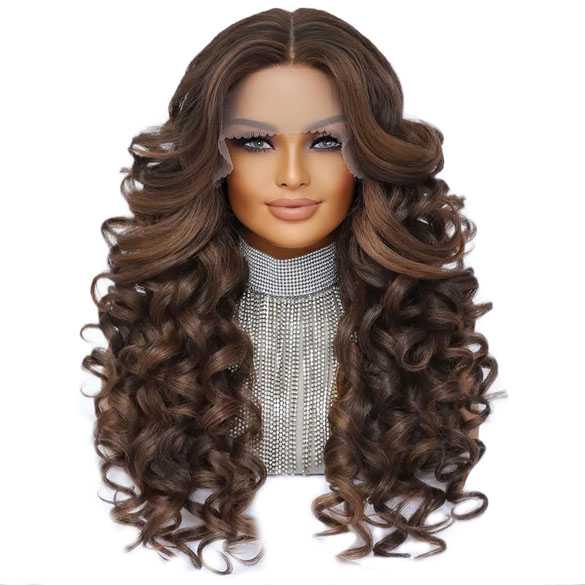 Luxe lace front pruik lang krullend haar Calla P4-30-27