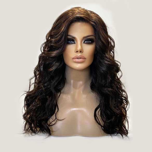 Swiss lace pruik lang bruin haar beach wave krullen model Calyx