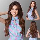 Mono lace front pruik met lang steil haar in laagjes geknipt. Model zonder pony. Mono top cap met lace zonder vaste scheiding, waarin u zelf de scheiding kunt creëren waar u deze wilt hebben (links, rechts, midden) Extra schuifkammetjes aan de binnenkant voor betere houvast. Top heeft een natuurlijke iets donkere uitgroei.
