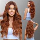 Luxe pruik lang krullend haar in bruinmix zonder pony model Jula