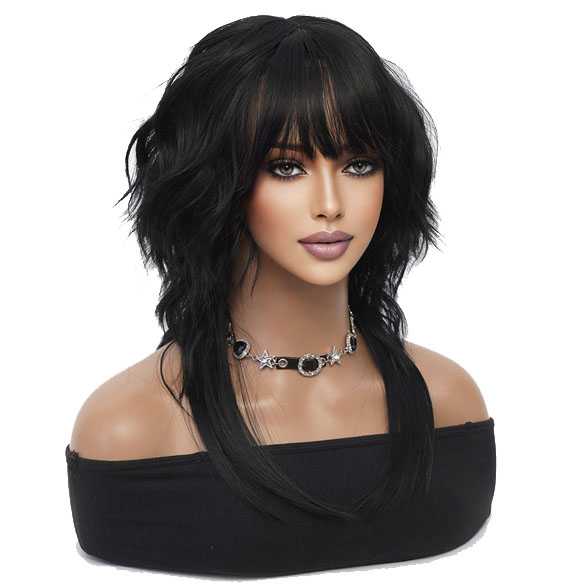 Trendy wavy pruik zwart haar met langere onderlaag