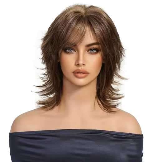 Vlotte pruik kort haar met plukjes in lichtbruinmix