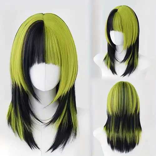Duo-color pruik steil haar in laagjes Billie Eilish look