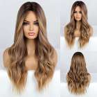 Mooie volle krullen pruik schouderlang haar in een bruin-blonde kleurenmix met lichtblonde accenten. Het haar is matig hittebestendig en kan gestyled worden met een föhn of krultang op lage temperatuur.