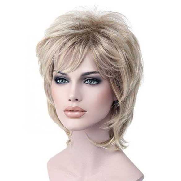 Andere kleur? » klik hierModerne pruik kort haar in laagjes blondmix